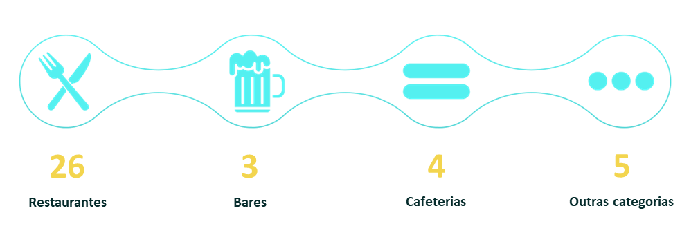 Dessas, 26 são restaurantes, 3 bares, 4 cafeterias e 5 de outras categorias. A baixa adesão ao Cadastur representa uma oportunidade de avanço, especialmente se considerada a visibilidade e os benefícios que o cadastro oferece — como acesso a programas de fomento, divulgação em plataformas oficiais e participação em campanhas de promoção turística.
